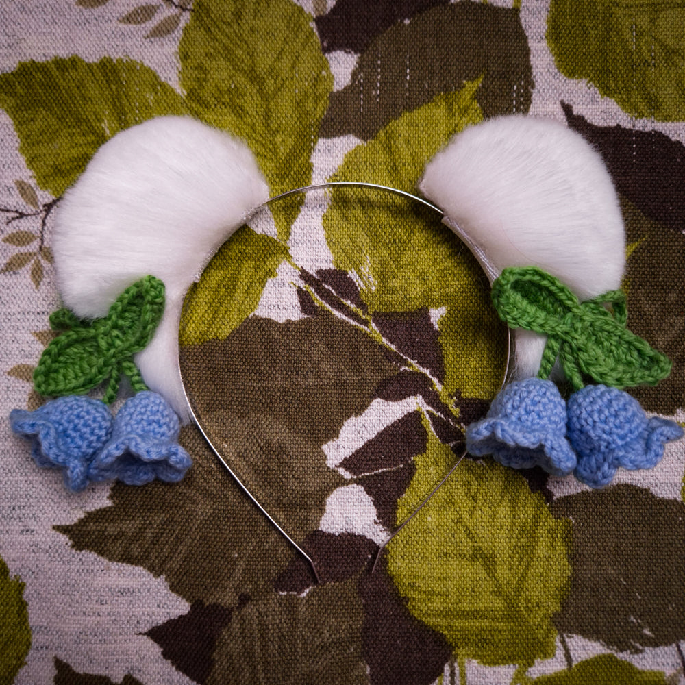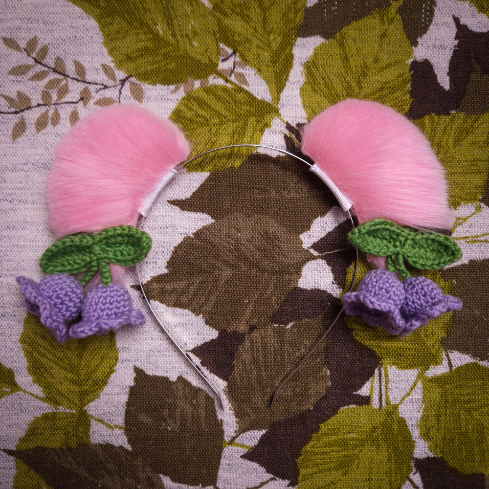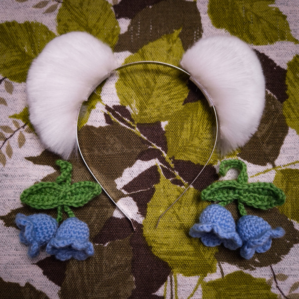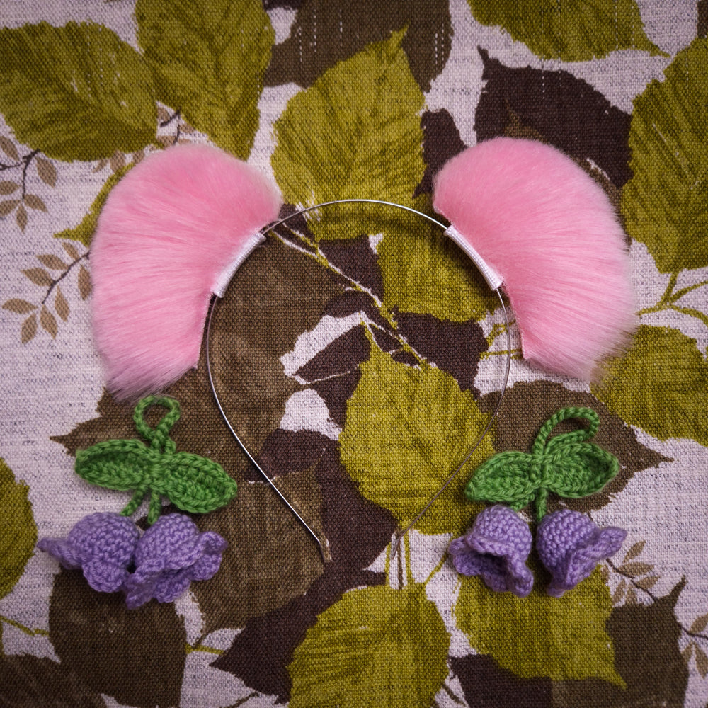 This set includes fantasy bear style faux fur ears on a metal headband, with two detachable crochet flower accessories. These ears fully wired, and attached with a stretchy fabric band for adjustability and comfort. You can select from three color options. The crochet flower accessories are made of wool yarn, and can also be worn as hair or bag accessories!