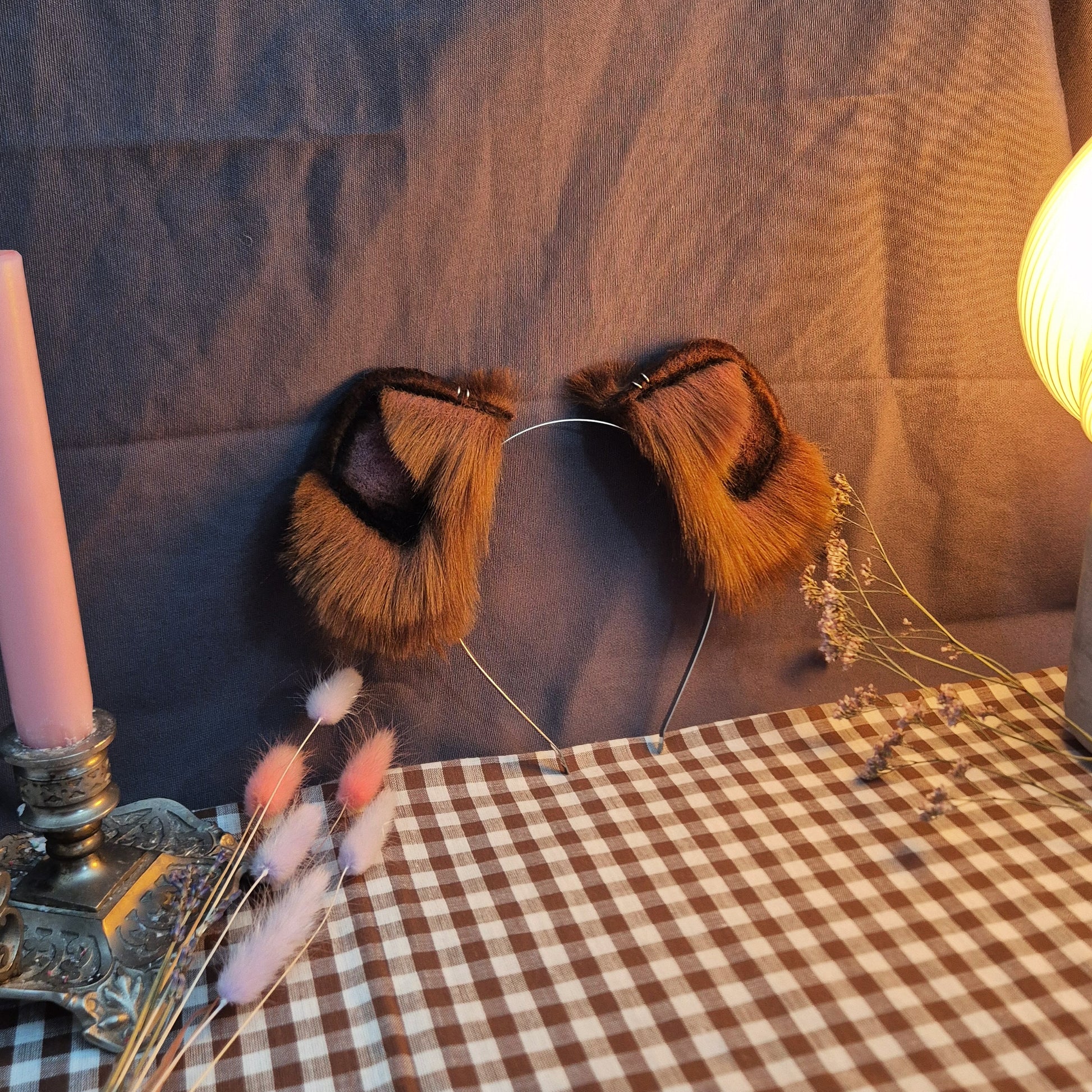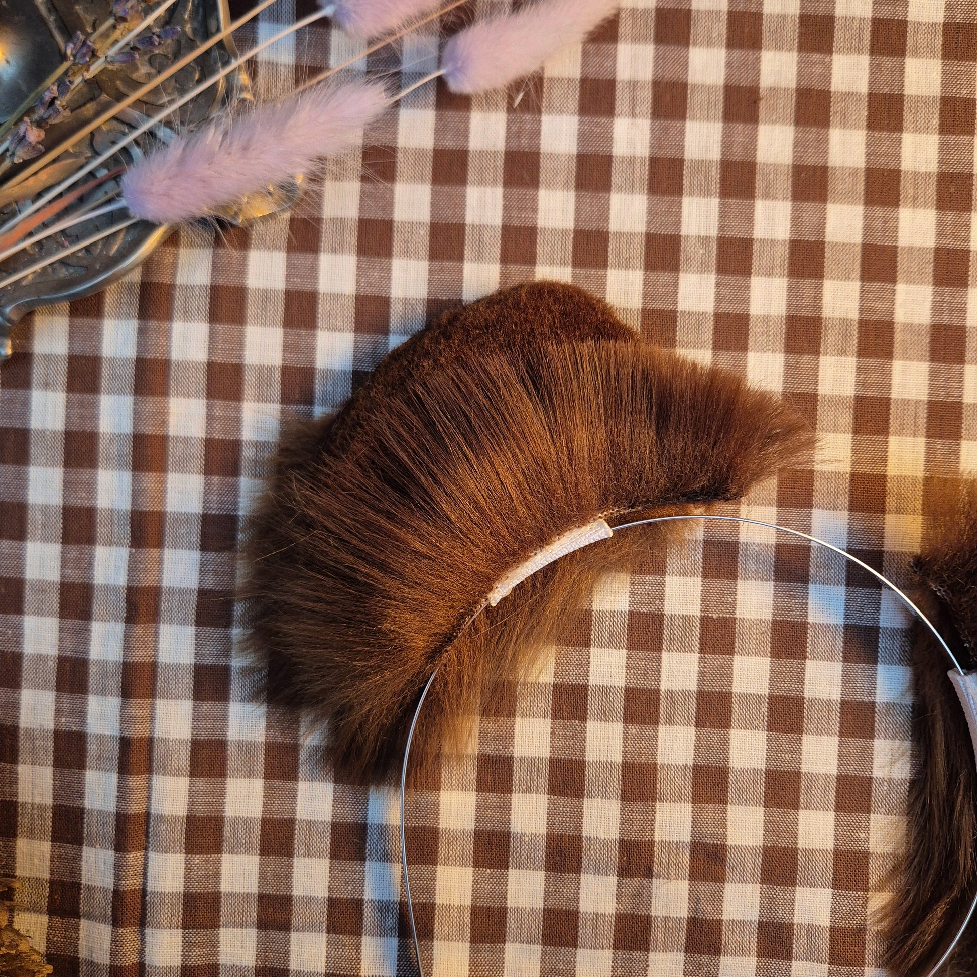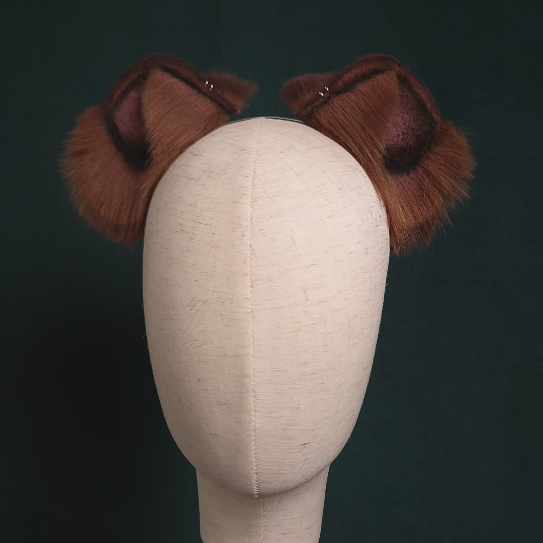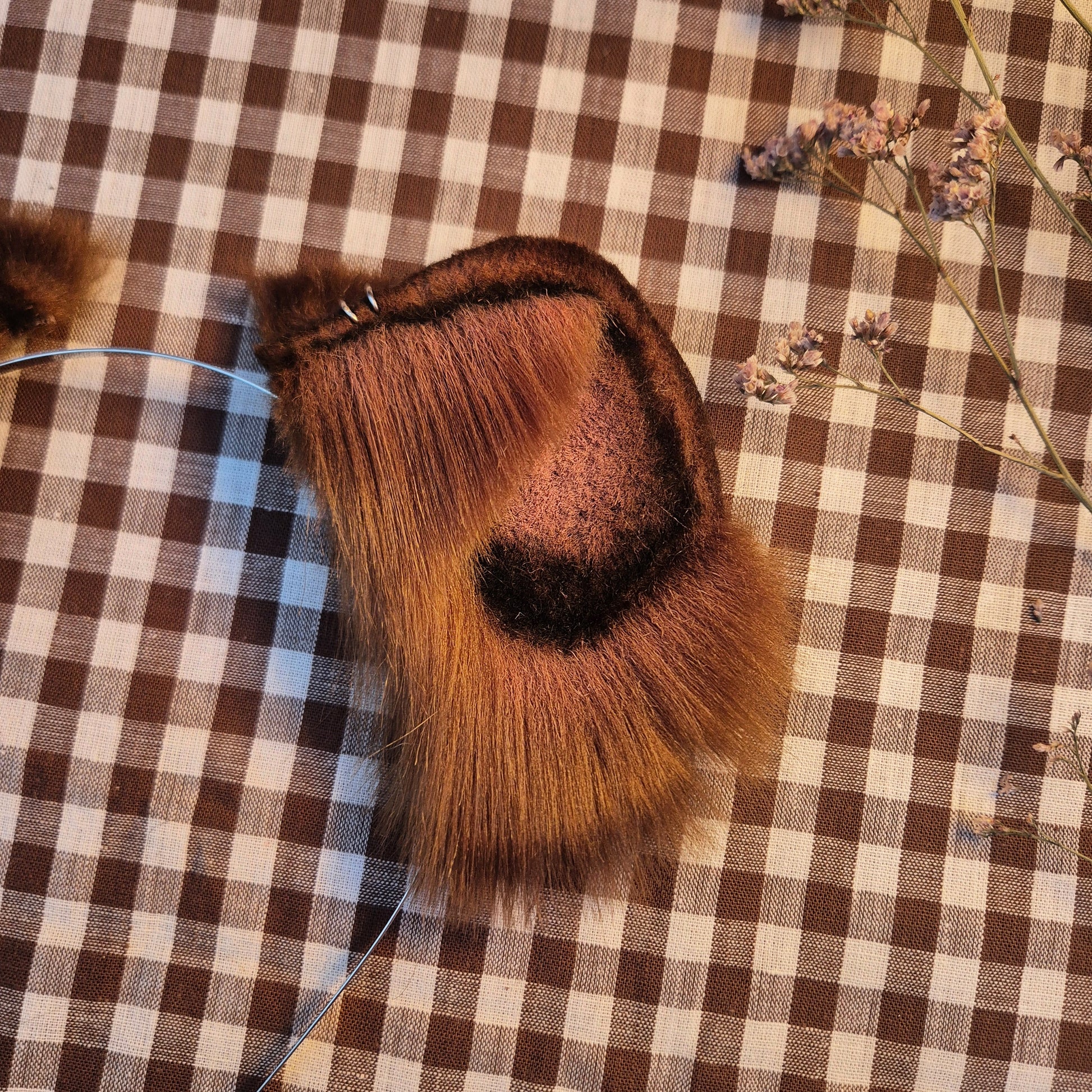 This set includes stylized bear faux fur ears on a metal headband, with small piercing-accessories. (not actual piercings, can be removed) Ears are fully wired and poseable and attached with a stretchy fabric band for adjustability and comfort. Image decorations are not included.